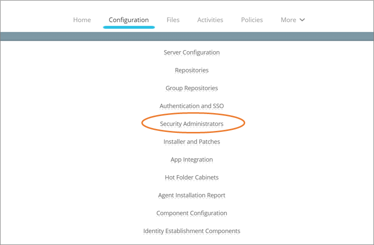 To see the list of Security Administrators and Global Security Administrators, click Configuration > Security Administrators
