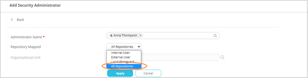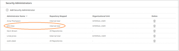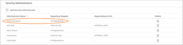 The Global Security Administrator will be added. Note that all Global Security Administrators have the ‘All Repositories’ tag under the Repositories Mapped column.